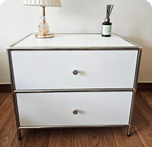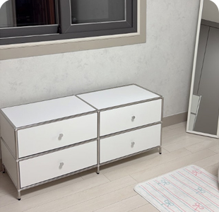 생각보다 수납이 많이 돼서 만족스럽습니다. 그리고 침대옆에 두니까 전체 분위기가 환해졌어요.