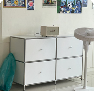 생각보다 수납이 많이 돼서 만족스럽습니다. 그리고 침대옆에 두니까 전체 분위기가 환해졌어요.