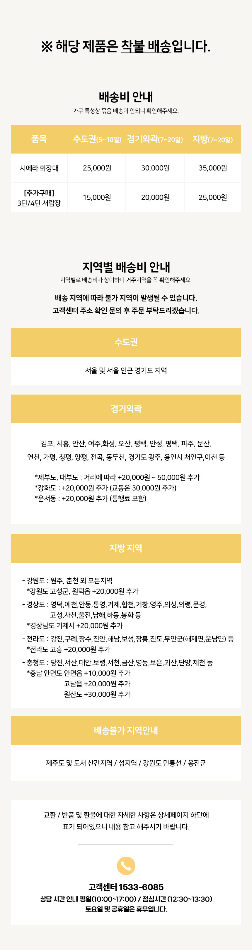 - 배송안내: 결제 완료 후 영업일 기준 수도권 5-10일 / 지방지역 7-20일 소요됩니다.