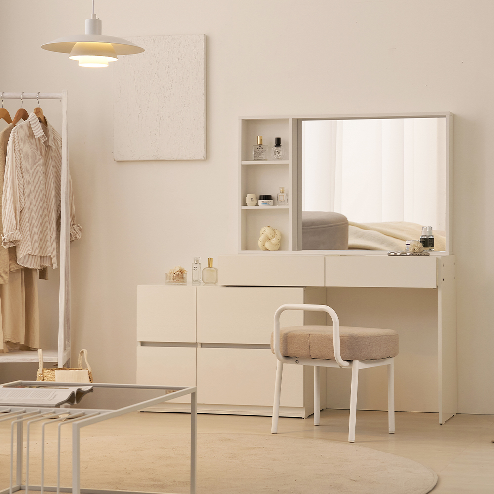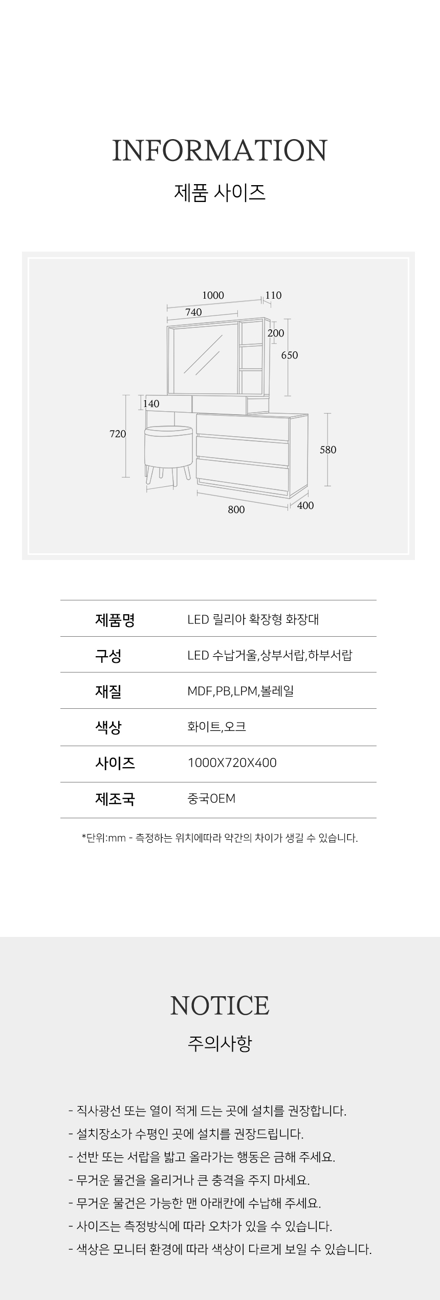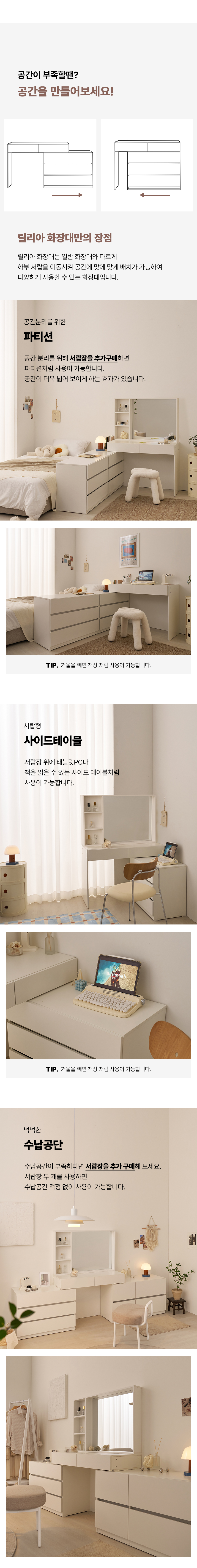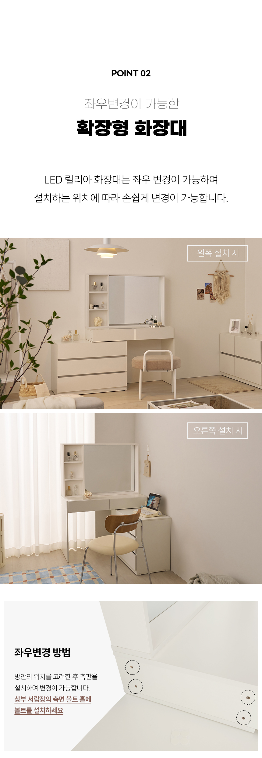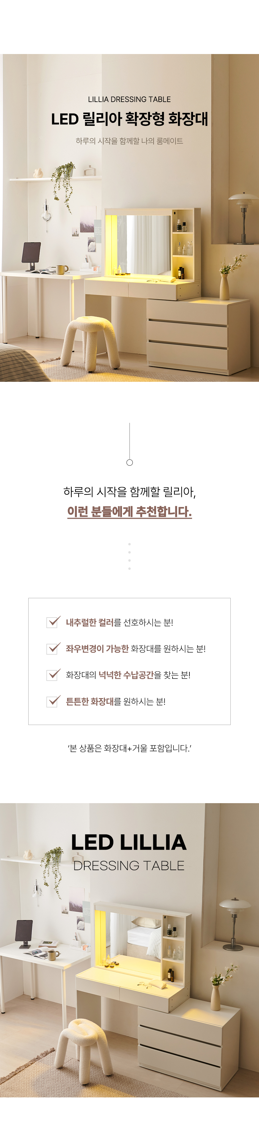 | 품명 | 릴리아 LED 화장대 확장형 콘솔 3단 서랍장 |