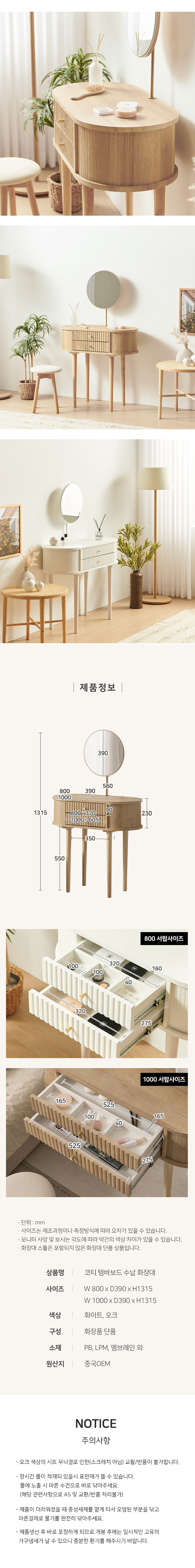 | 품명 | 코티 템바보드 수납화장대 800/1000 (거울포함) |