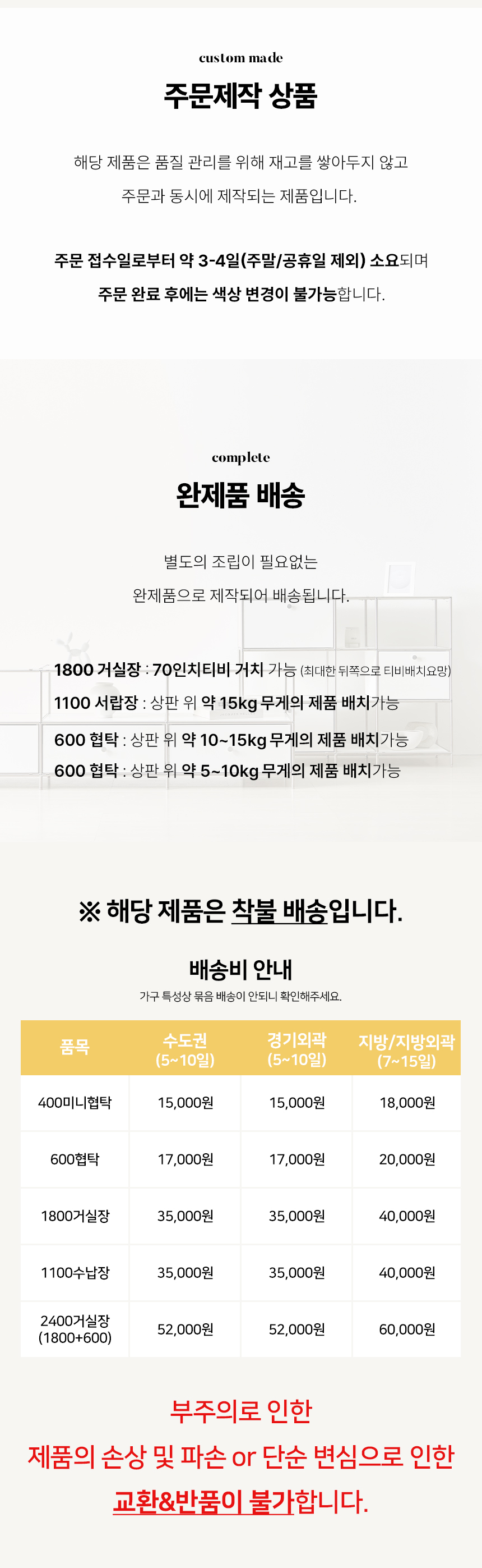 - 배송안내: 결제 완료 후 영업일 기준 수도권 5-10일 / 지방지역 7-20일 소요됩니다.
