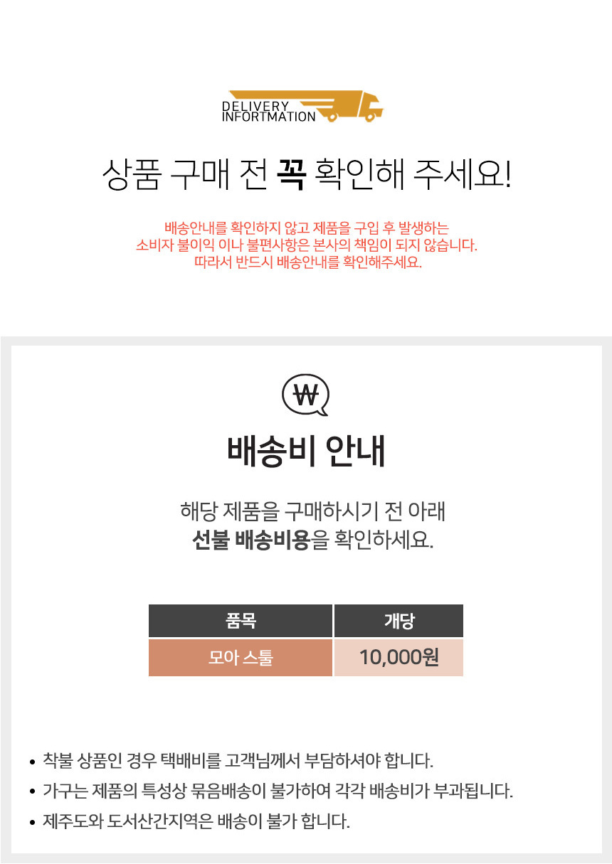 - 배송안내: 결제 완료 후 영업일 기준 수도권 5-10일 / 지방지역 7-20일 소요됩니다.