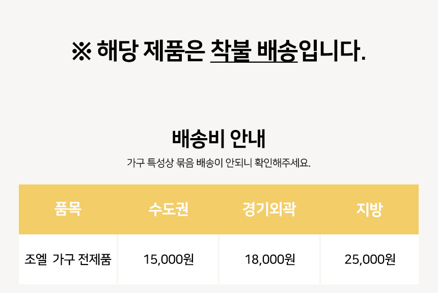 - 배송안내: 결제 완료 후 영업일 기준 수도권 5-10일 / 지방지역 7-20일 소요됩니다.